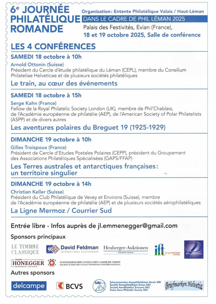 L’Entente Philatélique du Valais/Haut-Léman & la revue Rhône Philatélie organisent chaque année une Journée Philatélique Romande. Les voici.
